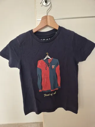 T-shirt blu navy con stampa di una maglia da calcio divisa in due colori, rosso e blu, con il logo del Genoa e la scritta First of all. - Stampa a tema calcistico. - Colore blu navy.