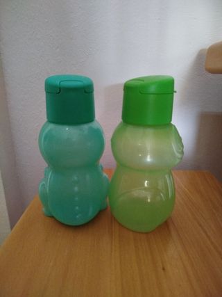 Vendo due borracce per bambini, in plastica, a forma di animale. Sono in ottime condizioni e perfette per la scuola o le gite fuori porta. - Colore verde acqua e verde chiaro - Capacità: 300ml - Materiale: plastica resistente - Design simpatico a forma di animale