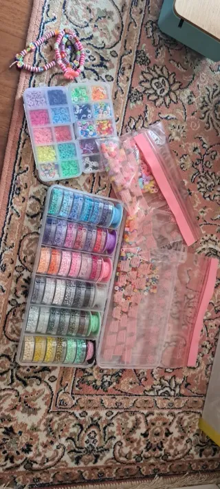 Materiale per realizzare braccialetti e collanine Tanta quantità,colori,lettere,qualche soggettino