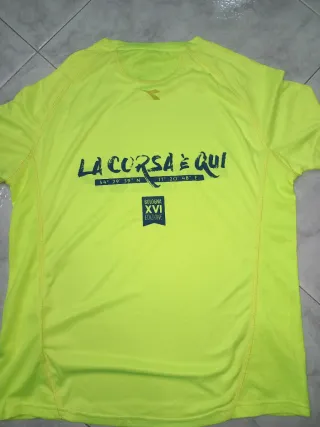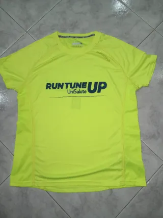 Maglia sportiva Diadora da uomo, colore giallo fluo. - Logo Diadora sul petto. - Scritta RUN TUNE UP UniSalute sul davanti. - Tessuto tecnico traspirante.
