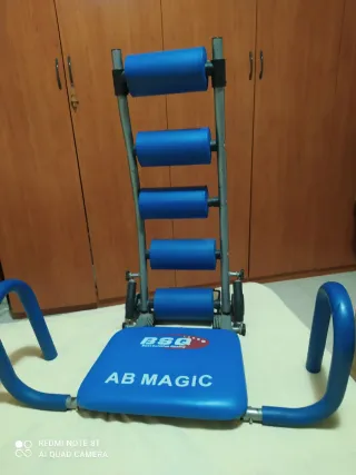Attrezzo per allenare gli addominali, marca AB MAGIC. - Colore blu. - Logo BSQ Best Solution Quality sul davanti. - Struttura in metallo con rulli imbottiti.