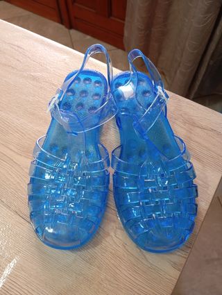 In gomma, indossati una sola volta, nuovissimi. Misura 40, colore blu.