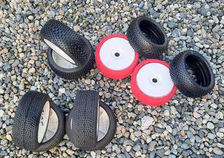 Per passaggio a GT vendo 2 treni di gomme, uno RB e uno PROLINE. Gomme da off road-Buggy in scala 1/8 eco e nitro, esagono da 17. 1 treno RB STD Soft 1 treno PROLINE HOT SHOT #9041-003 (Soft) PROLINE Nuove in busta, le RB avranno fatto 2 giri di pista. Come da foto, prezzo per tutto il lotto 2 treni, 8 gomme già incollate su cerchio. Viste e piaciute.