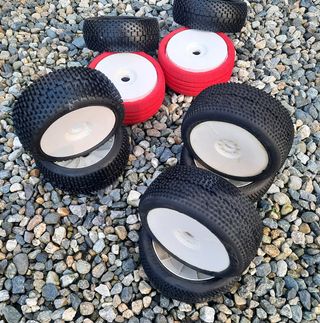 Per passaggio a GT vendo 2 treni di gomme, uno AKA e uno PROCIRCUIT. Gomme da off road-Buggy in scala 1/8 eco e nitro, esagono da 17. 1 treno AKA IMPACT mescola Super Soft USATE 2 giri di pista. 1 treno PRO CIRCUIT Sweet Shot NUOVE mescola purple (Soft) . Come da foto, le PROCIRCUIT sono da incollare con cerchi e riempimenti MATRIX Come da foto, prezzo per tutto il lotto, 2 treni, 8 gomme complete.