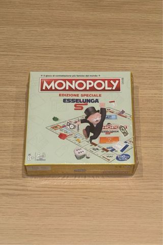 Gioco da tavolo Monopoly, edizione speciale Esselunga. - Il gioco di contrattazione più famoso del mondo. - Adatto a giocatori dagli 8 anni in su. - Include pedine, dadi e carte.
