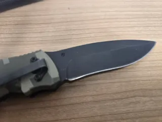 Coltello ATK con manico colorazione ACU mimetica. Con accessorio taglia cinghia e spuntone posteriore rompi vetro. Dotato di porta coltello posteriore. Completo di fodero in cordura per il trasporto a cintura. Dimensioni: Lunghezza lama: 7cm Lunghezza complessiva coltello: 20cm.