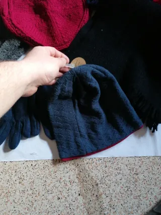Stock di abbigliamento invernale, ideale per la montagna o per stare al caldo. - Sciarpa fucsia con frange(2 mt x 50 cm) -Sciarpone blu(120x40cm) -Sciarpa nera (120x30cm) - Berretto rosso(stile francese!) - Guanti blu(nuovi!) - Berretto blu(nuovo!) - Berretto grigio(ottime condizioni!) - Calzini bianchi e arancioni(lavorazione artigianale!) Il prezzo si riferisce al totale dei prodotti!