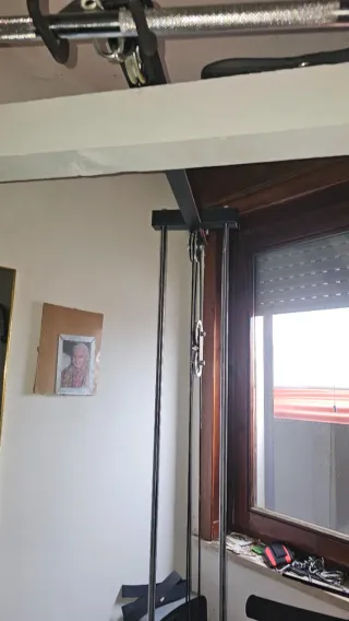 Attrezzatura per allenamento per la parte superiore e inferiore del corpo. - Struttura in metallo resistente. - Cavi per esercizi di trazione. - Design compatto.