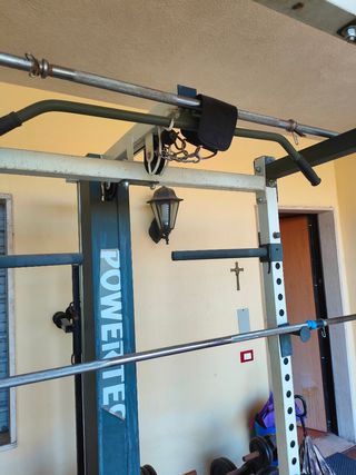Vendo palestra completa: squat rack con leg press, due bilancieri, aste per trazioni, mantaray per squat, due pedane etc.