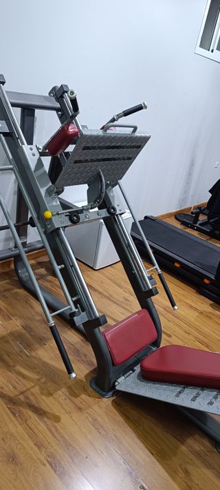 Leg press di marca FORCE USA. Totalmente nuovo, usato per un paio di giorni e smontato per mancanza di spazio. Molto comodo e versatile, è compatibile con dischi da 50 mm e 30 mm.