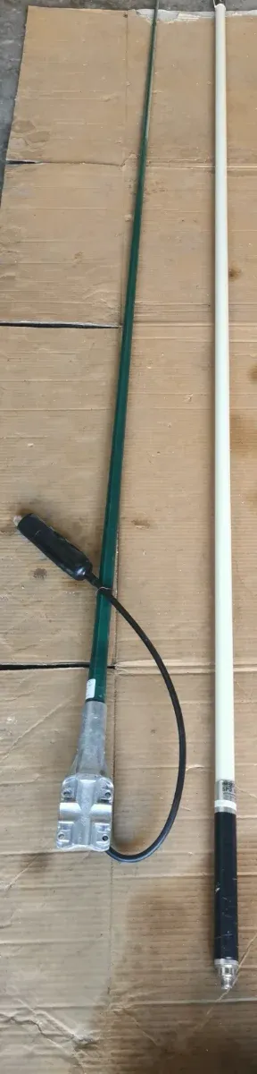 Antenna VHF per radioamatori. - Antenna di colore verde. - Base di montaggio in metallo. In ottime condizioni: -Antenna bianca gamma di frequenza 145-160mhz -Antenna Verde gamma di frequenza 152-163mhz.
