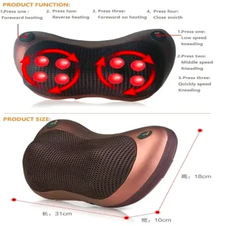 Caratteristiche Esclusive: ✅ 8 Rulli Massaggianti Potenti: Imitano il massaggio delle mani per sciogliere ogni tensione. 🔥 Funzione Riscaldante: Calore lenitivo per un'esperienza di massaggio ancora più rilassante. 🔄 Massaggio Bidirezionale: Scegli tra movimento in avanti o inverso per un massaggio personalizzato. 🕹️ Controllo Semplice e Intuitivo: Due pulsanti per selezionare facilmente la modalità preferita. 🏠 Portatile e Versatile: Ideale per casa, ufficio o auto – portalo ovunque tu vada! 🛠️ Modalità di Utilizzo: Pulsante 1: Riscaldamento e Massaggio 1️⃣ Premi 1 volta: Riscaldamento in avanti 2️⃣ Premi 2 volte: Riscaldament