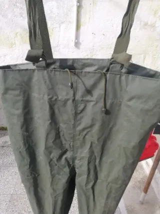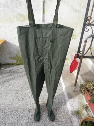 Scafandro da pesca in PVC, ideale per proteggersi dall'acqua durante le attività all'aperto. num.42 - Materiale: PVC resistente. - Colore: Verde. - Design con bretelle regolabili.