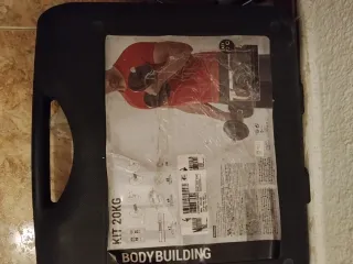 Set di manubri regolabili con un peso totale di 20kg. Ideali per l'allenamento a casa. Peso totale: 20 kg. Include barre e dischi. Impugnatura antiscivolo.