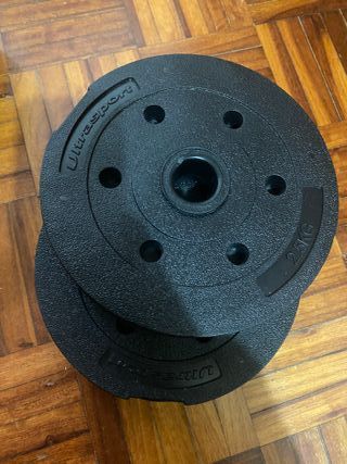 Set di manubri regolabili per allenarsi a casa. Include dischi per personalizzare il peso. - 6 dischi da 1,25 kg - 2 dischi da 1 kg