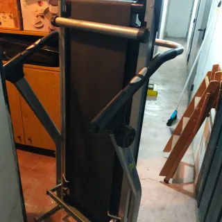 Tapis roulant domestico, ideale per allenarsi in casa in modo silenzioso. Facilmente ripiegabile per un comodo stoccaggio. - Struttura robusta. - Manubri ergonomici. - Design compatto una volta piegato.