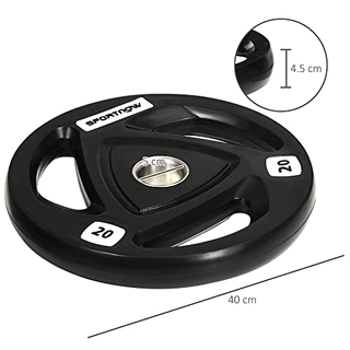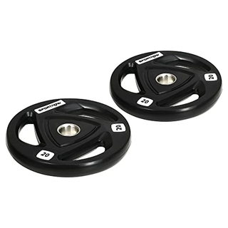 SET DA 2: Questo set è composto da 2 dischi pesi, per allenarti al meglio e sviluppare la tua muscolatura. IDEALI PER BILANCIERE: I nostri pesi da palestra hanno un foro centrale di 5 cm, che ti consente di montarli su un bilanciere (non incluso). IMPUGNATURE: Ogni disco è dotato di 3 aperture che ti consentono di impugnarlo in modo sicuro per i tuoi allenamenti senza manubri o bilancieri. RIVESTIMENTO IN GOMMA: I dischi sono rivestiti in gomma, per proteggere il pavimento dai graffi quando ti alleni. DIMENSIONI: Dimensioni generali: Ø40 x 4.5P cm. Peso di ogni disco: 20kg.