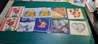 Tovaglioli 16x16 cm di varie fantasie sono circa 58/60 sono interi quelli ritagliati li regalo
