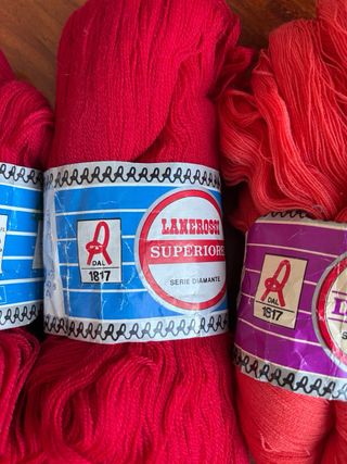 Lotto di 5 matasse di pura lana vergine Lanerossi. - Colori disponibili: rosso e corallo (come da foto) - Serie Superiore e Serie Diamante. Ogni matassa pesa 100gr, per un totale di 500gr.