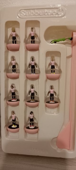 Squadra subbuteo "Club Palermo Calcio" nuova mai usata composta da 10 giocatori ed un portiere con asta tutti numerati.