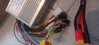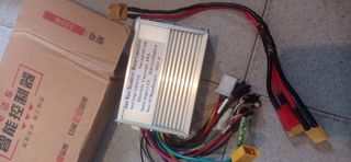 Controller e acceleratori display per monopattini e biciclette elettriche. Componenti elettronici per veicoli elettrici. Include vari modelli di controller con custodie in alluminio. Acceleratori con cablaggi e connettori diversi.