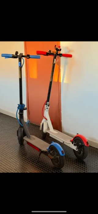 Si vendono due monopattini elettrici. - Uno di colore bianco con dettagli rossi. - L'altro di colore nero con dettagli blu e rossi. Entrambi sono in perfette condizioni, marca Xiaomi.
