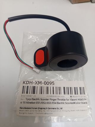 Acceleratore per monopattino elettrico XIAOMI M365 e Ninebot ES1/ES2/ES3/ES4. È di colore nero e ha un pulsante rosso. - Compatibile con monopattini elettrici XIAOMI M365 e Ninebot ES1/ES2/ES3/ES4. - Colore nero. - Include 1 unità.