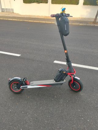 È nuovo e funziona perfettamente, con batteria esterna che dura 45-50 km e autonomia di 35-40 km circa. Freni a disco posteriori sostituiti. Coperture per cavi, vinili, manubri modificati. Sospensioni anteriori e posteriori modificate. E borsa per riporre oggetti... Accetto scambi con monopattini elettrici o pit bike o scooter 49cc.