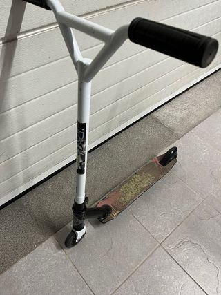 Si vendono tre monopattini freestyle, ideali per trucchi e acrobazie. - Monopattino nero con dettagli verdi - Monopattino bianco con dettagli rossi. - Monopattino nero con dettagli verdi e rosa.