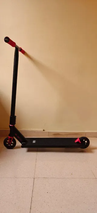 In vendita due monopattini freestyle, uno nero e uno rosso. Ideali per trucchi e acrobazie. - Monopattino nero con ruote rosse. - Monopattino rosso con ruote nere. - Manubrio nero. - Piattaforma nera.
