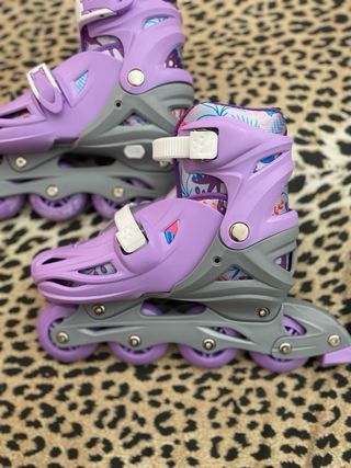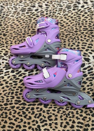 Pattini in linea di colore lilla. Calzano dal n. 35 al n. 38. Pulsante “push” per regolare la lunghezza. Vendo perchè mi vanno piccoli. NUOVIIII