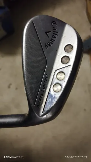 Sand iron Callaway Jaws Raw con un diseño distintivo. - Logo Callaway. - Inscripción Jaws Raw.