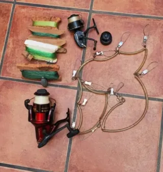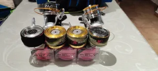 - 1 carrete sagarra. - 3 carretes sagarra tarzan e 2 bobine tarzan di riserva. - 1 carrete sting eca. - 1 carrete Caperlan. - 2 bobine filo pescare