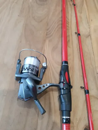 In vendita due canne da pesca rosse, ciascuna con il proprio mulinello. Caratteristiche: Canne da pesca rosse. Include mulinelli. Due unità disponibili.