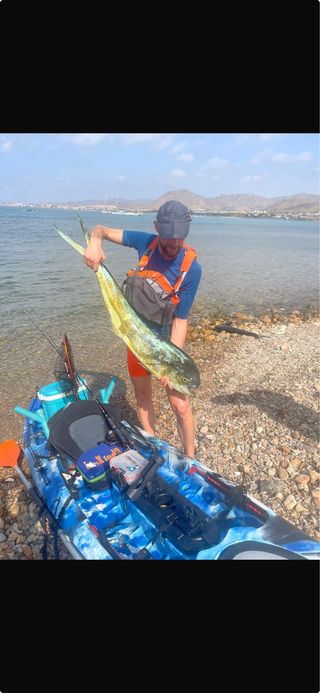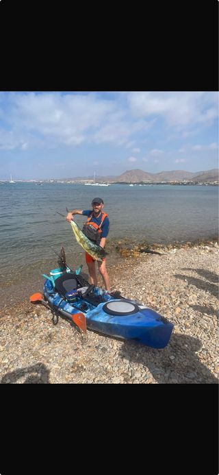 Kayak da pesca pronto all'uso, ideale per godersi giornate di pesca in mare. Il suo design permette stabilità e comfort, con timone, rapido e stabile 3,6m. Include accessori per la pesca: sonda Garmin, batteria, canne, cuscino, ruote per il trasporto, borsa stagna, ancora, porta-esca, canne e mulinelli a parte, marca Gore.