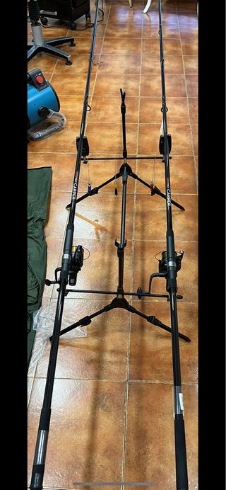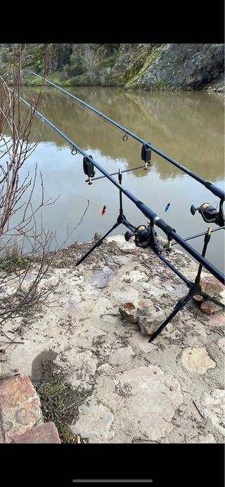 Attrezzatura da pesca per la pesca alla carpa, ideale per godere di lunghe giornate. - Canne da pesca. - 2 Mulinelli ultimate (uno senza bobina). - Supporto per canne (rod pod) con custodia. - 2 Indicatori di abboccata (alarme ultimate). 1 confezione di boilies pop up e sapori. Scrivi per maggiori informazioni.