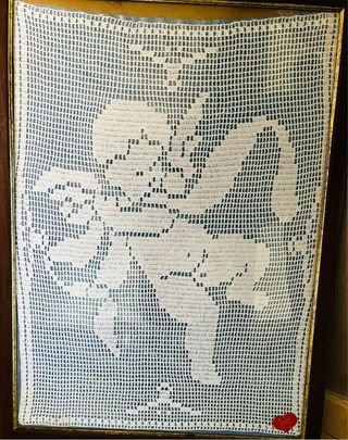 Applicazione ricamata a mano all’ uncinetto dimensioni circa 50x70cm Soggetto Angelo Solo ricamo no cornice
