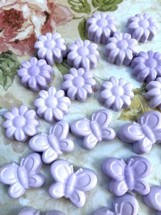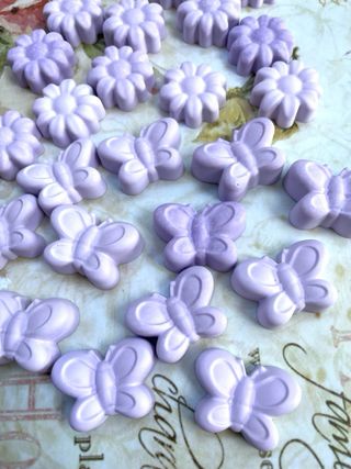 25 gessetti profumati fiore e farfalla 3x3cm colore lilla
