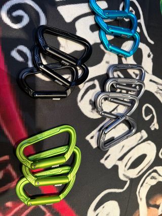 13 Moschettoni vari colori e modelli 9 edlrid pure slider 4 edlrid grigi leva dritta