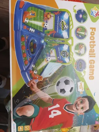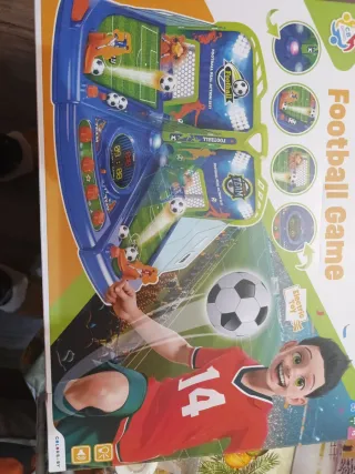 Calcio balilla da tavolo marca Crane, modello mini. Montato e utilizzato solo una volta. Include 12 giocatori (6 per squadra), 2 palloni e 2 marcatori di punti. Età consigliata: 6+ anni.