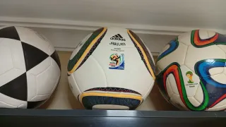 Tre palloni da calcio commemorativi di eventi storici. - Pallone Adidas Jabulani Sudafrica 2010. - Pallone Brazuca Brasile 2014. - Pallone classico bianco e nero. - Pallone champions 2025 - Pallone real Madrid ufficiale vecchio 1902 VENDO SULTO e tutti 150€ Prezzo negoziabile, chiedere senza impegno