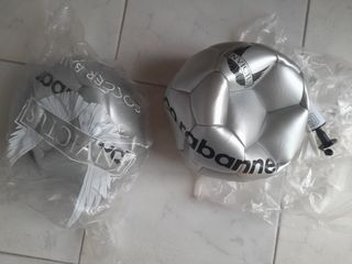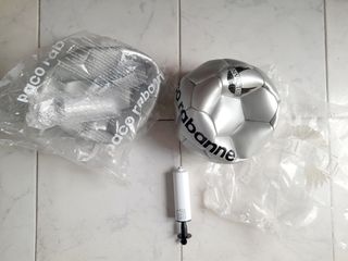 Due palloni da calcio Invictus di Paco Rabanne, con relative pompe. Prezzo singolo 20 eu. Prezzo totale per entrambi 30 eu.