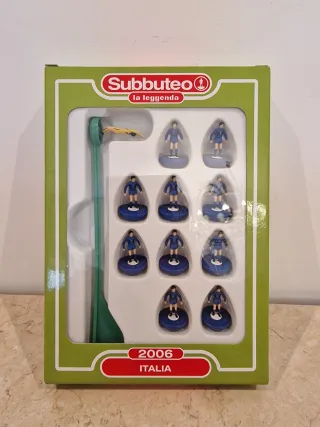 *DA COLLEZIONE PERSONALE* Subbuteo Set di 12 squadre complete -ITALIA 2006 -ITALIA 1982 -BRASILE 1970 -ARGENTINA 1986 -ITALIA 1934 -ITALIA 1968 -BOCA JUNIORS 2003 -ITALIA 1938 -OLANDA 1974 -SPAGNA 2008 -NAPOLI 2007/08 -NAPOLI 1986/87 -2 COPPIE DI PORTE -5 TRIS DI PALLONI (di cui uno Juventus uno Milan) -2 TRIS DI BANDIERINE n.b. I blister 2tris di palloni risultano scollati dal cartoncino ma comunque integri.