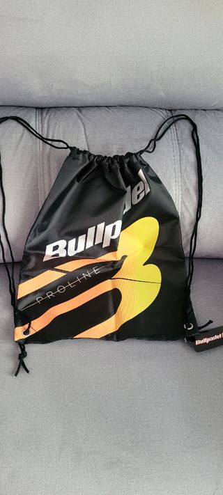 Borsa per racchette della marca Bullpadel in colore blu e nero. Design con grande logo di Bullpadel. Cinturino regolabile per la spalla. Chiusura con cerniera.