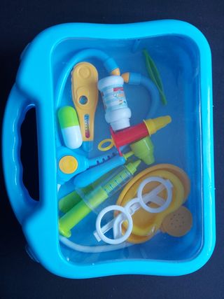 Custodia per giocattoli da dottore con accessori.