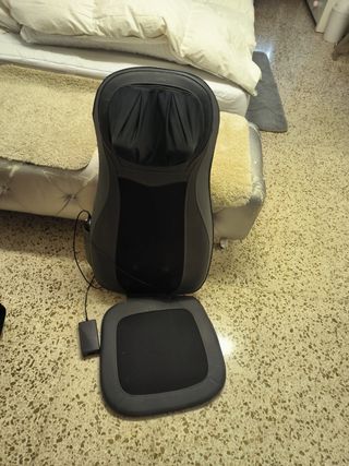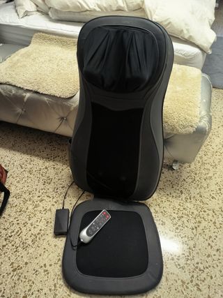 Supporto da posizionare su una poltrona o una sedia. Massaggio completo della schiena, vibrazione sul sedile, sfere rotanti su collo e nuca. Diversi programmi e intensità. Deve essere collegato alla corrente elettrica