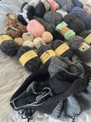 Conjunto variado di gomitoli di lana di diversi colori e texture. - Lana Katia Himalaya Style in tonalità di grigio. - Gomitoli di lana rosa e bianco. - Lana nera e grigio scuro. - Gomitoli di lana con finitura pelo in marrone. - Gomitoli di lana di diversi spessori e finiture. Vendo tutto il lotto per 20 euro.
