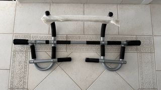 Barra per trazioni per allenarsi a casa. Si installa facilmente nel telaio della porta. Con costruzione robusta in metallo, impugnature imbottite per maggiore comfort, design regolabile. Buono stato.