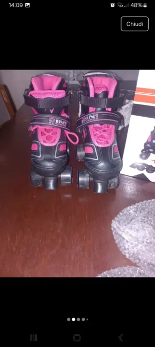 Set di pattini regolabili per bambina, ideali per imparare a pattinare. Il modello è convertibile da pattino in linea a quad. - Pattini regolabili in diverse misure. - Design bicolore rosa e nero. - Ruote resistenti per un buon scorrimento. - Chiusura con lacci, velcro e fibbia per una calzata sicura.