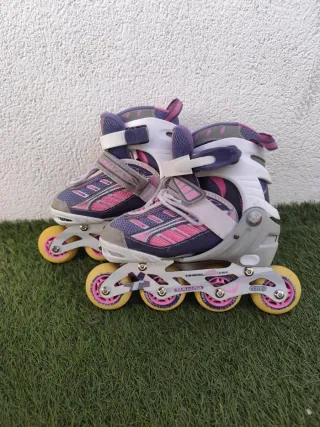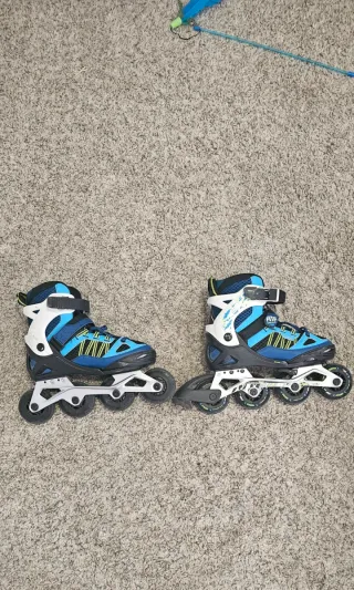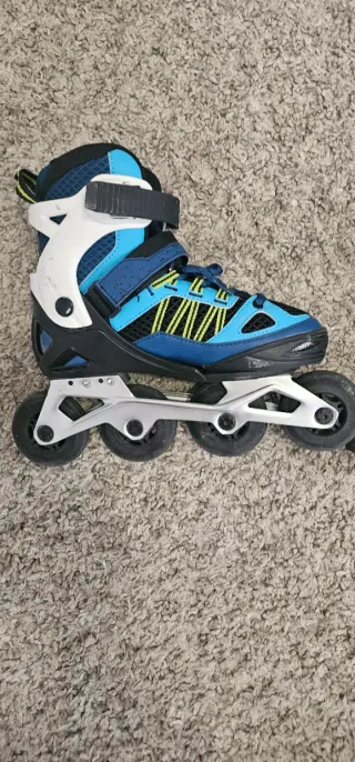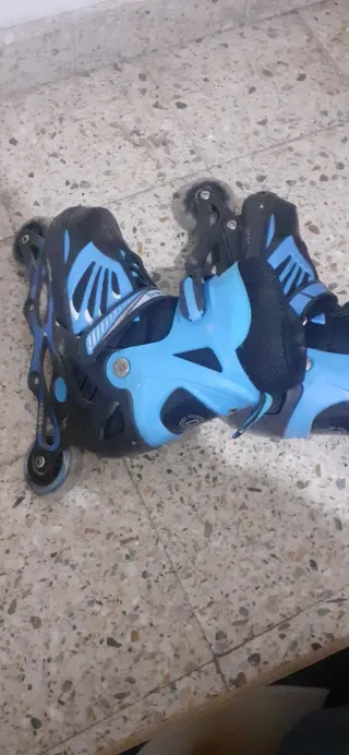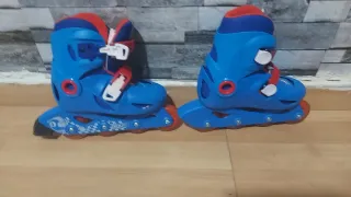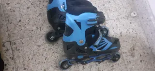 Vendiamo pattini inline blu, ideali per bambini. Sono regolabili per adattarsi alla crescita. - Taglia 28-30. - Chiusura con velcro e fibbia.